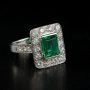 This breathtaking Art Deco Emerald and Diamond ring is 1930 Ca