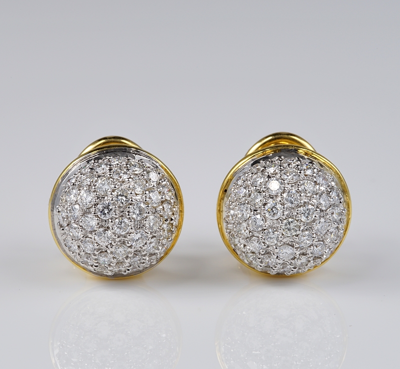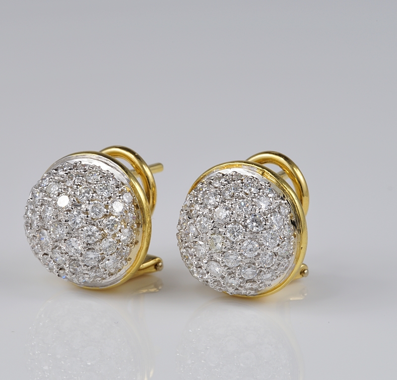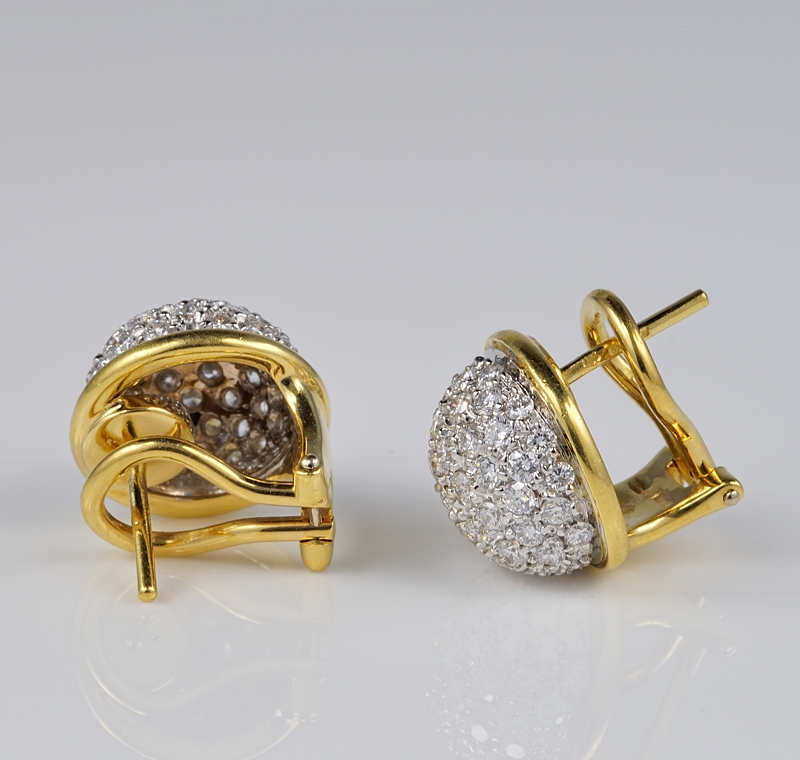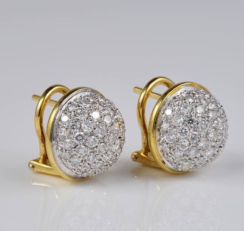 They hold an incredible amount of Diamonds expertly pave’ set – 94 round brilliant cut Diamonds for 2.30 Ct total content rated as G VVS
