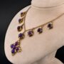 Gems: 12 round cabochon cut natural (foiled back) amethysts totaling approx 20,00 CT (average diameter 8 mm.) – 40 natural pearls of 2.5/3 mm. in diameter