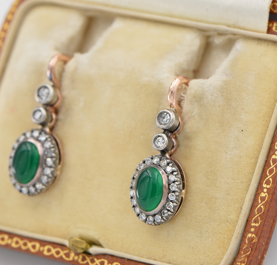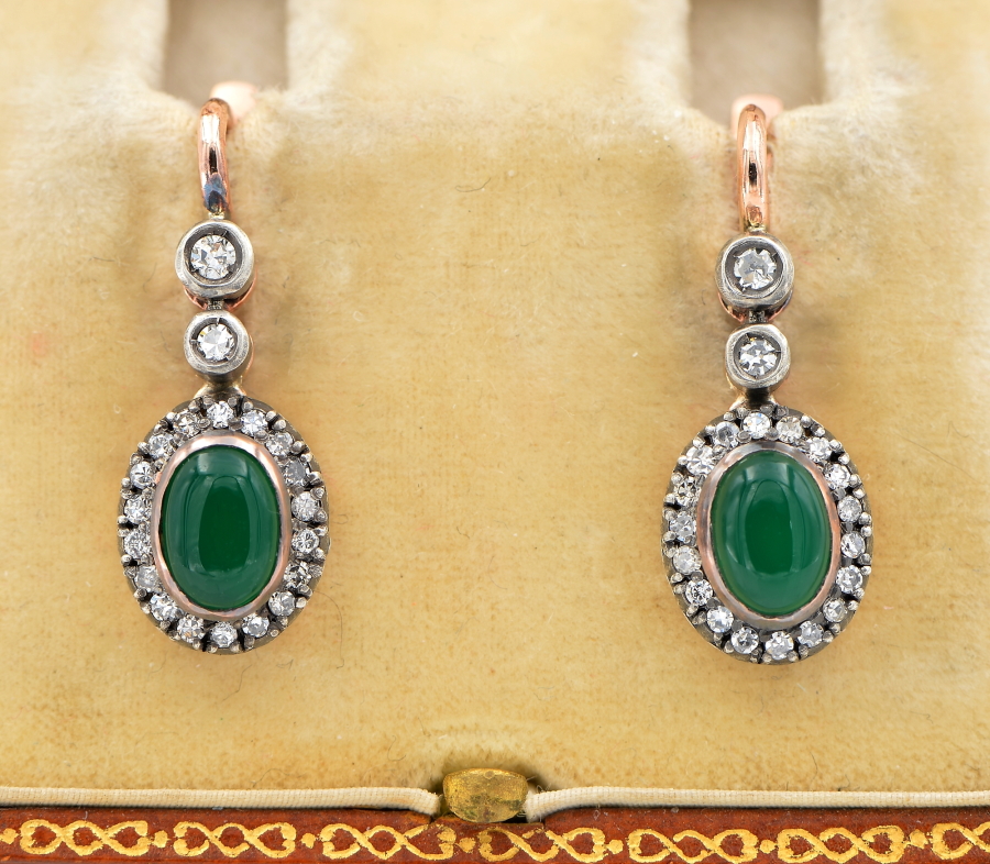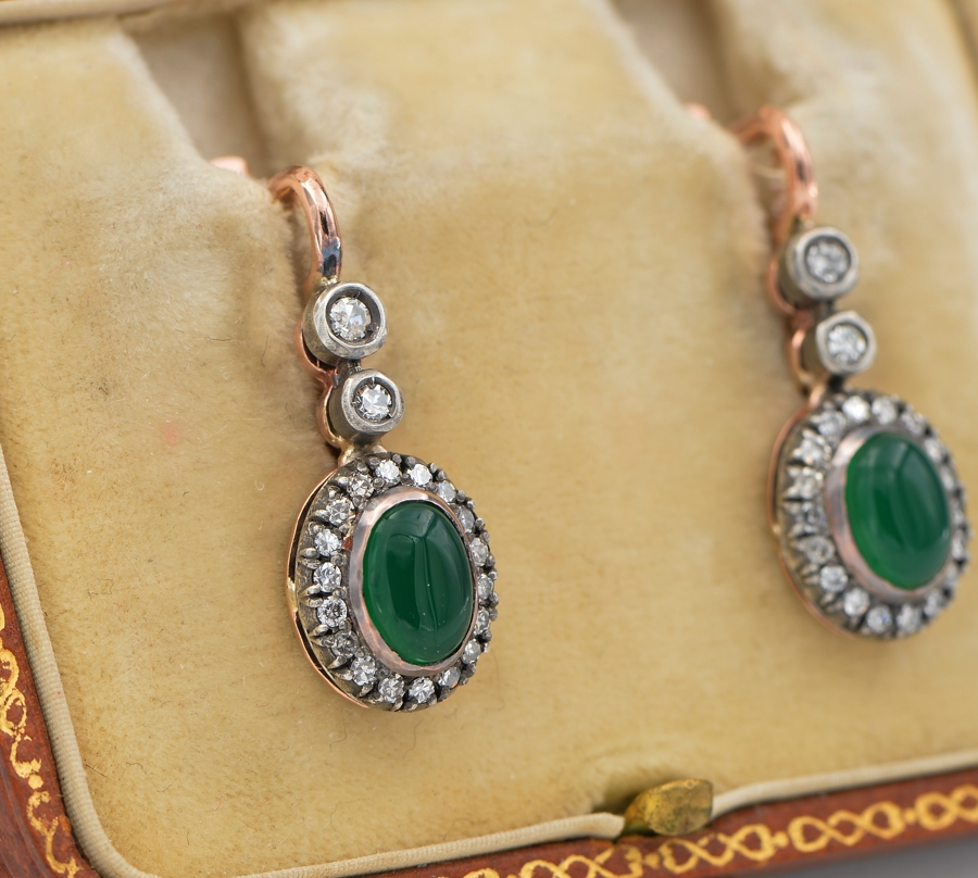 » » » » Antique Chrysoprase Diamond Russian Drop earrings -SOLD!