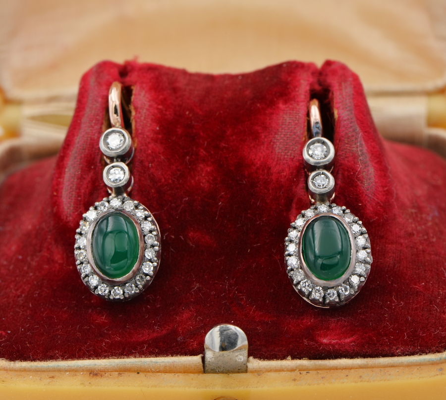 Antique Chrysoprase Diamond Russian Drop earrings -SOLD!