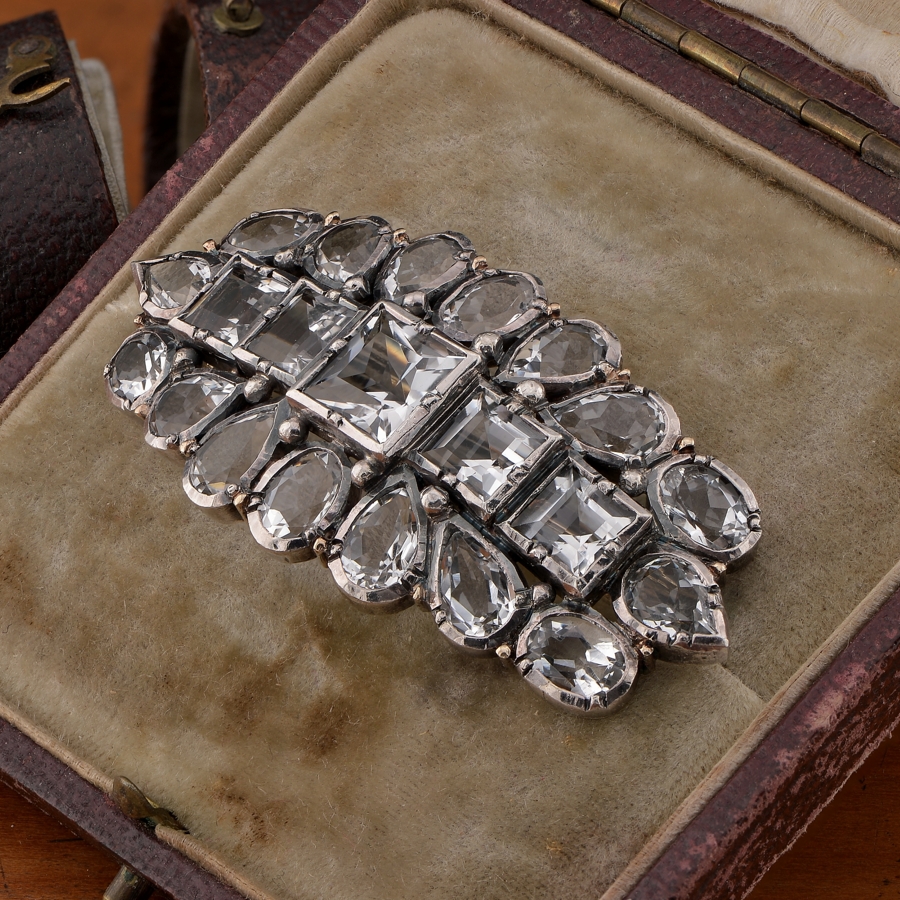 Extraordinary design made of rectangular body is made outstanding for the rare Rock Crystal set of various cuts and amazing, magic glow with each of the rare gemstones
