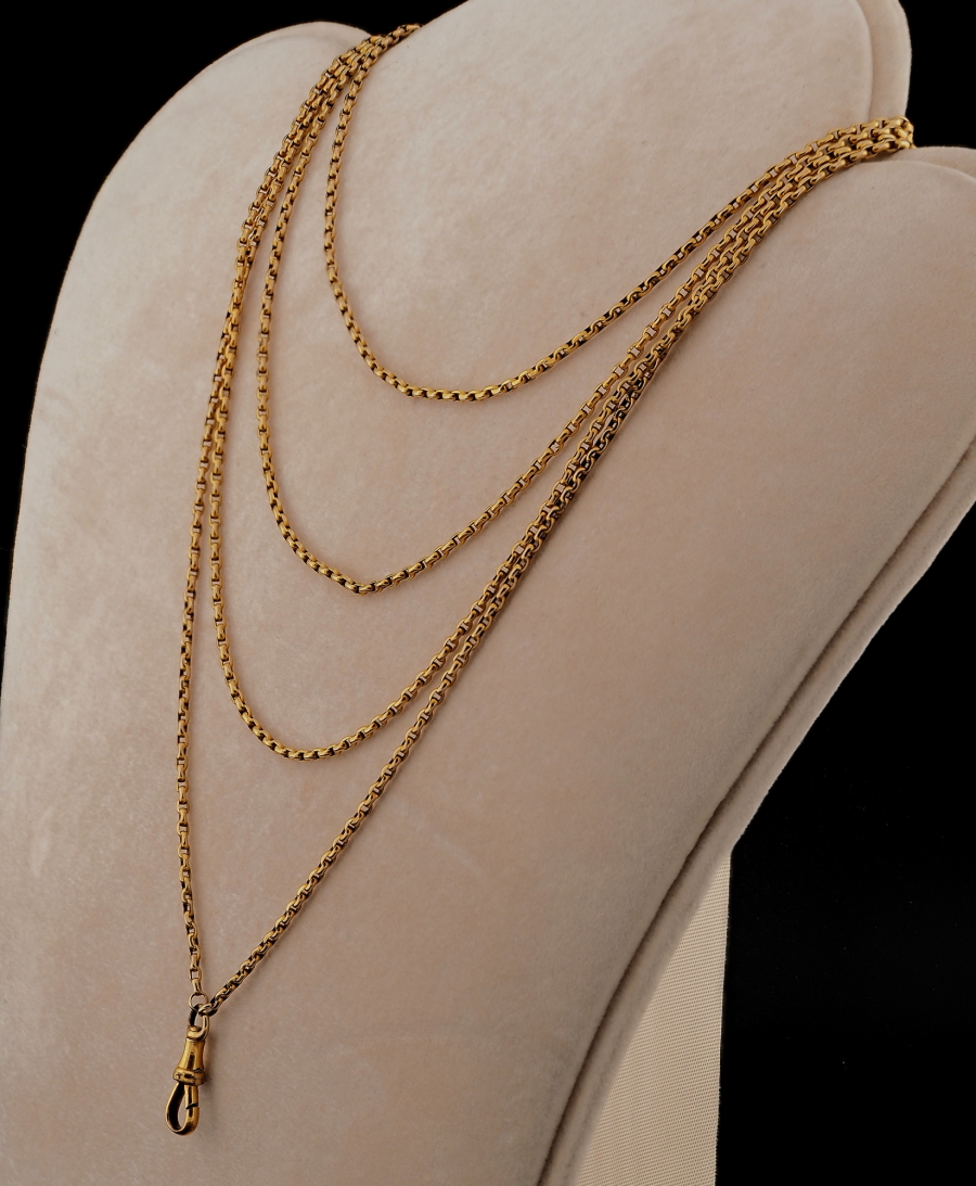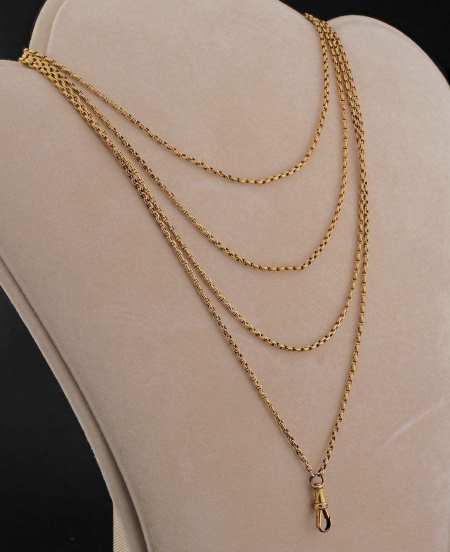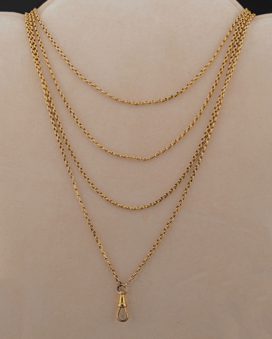 Chain is the traditional Victorian belcher chain completed with the dog clip