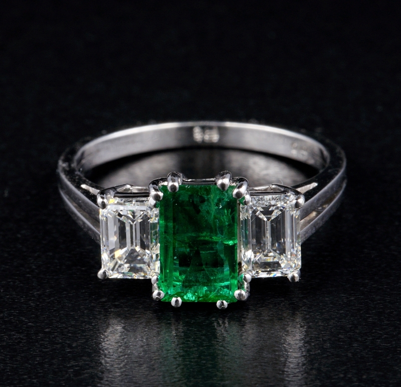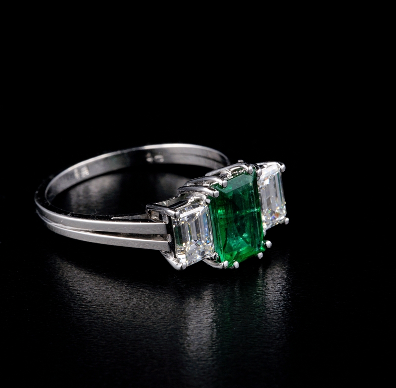 Emerald is 8.03 mm. x 4.98 mm. – we estimated it to be around one full carat with a much bigger presence as much as 1.50 Ct