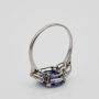 This absolutely breathtaking trilogy ring, is an authentic Art Deco example with back age to it – 1925 ca – mounting exquisitely hand crafted of solid Platinum with a simply yet effective mount to exalt the beauty of each stone