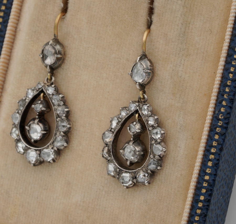 Beautiful Georgian period Diamond drop earrings of lovely design