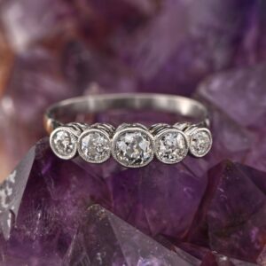 The band showcases a selection of 18 old mine cut Diamonds, chunky hand cut antique Diamonds facing up with immense sparkle for the very good quality they are – approx 2.60 being conservative rated G/H VVS/VS
