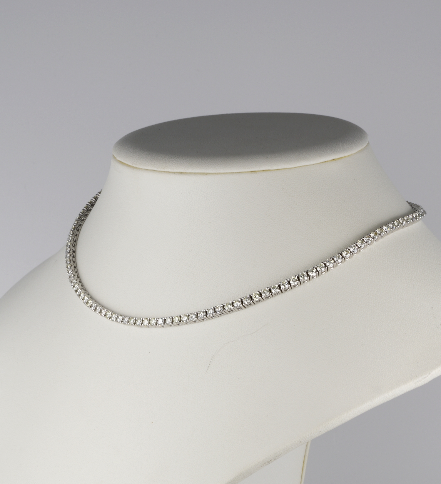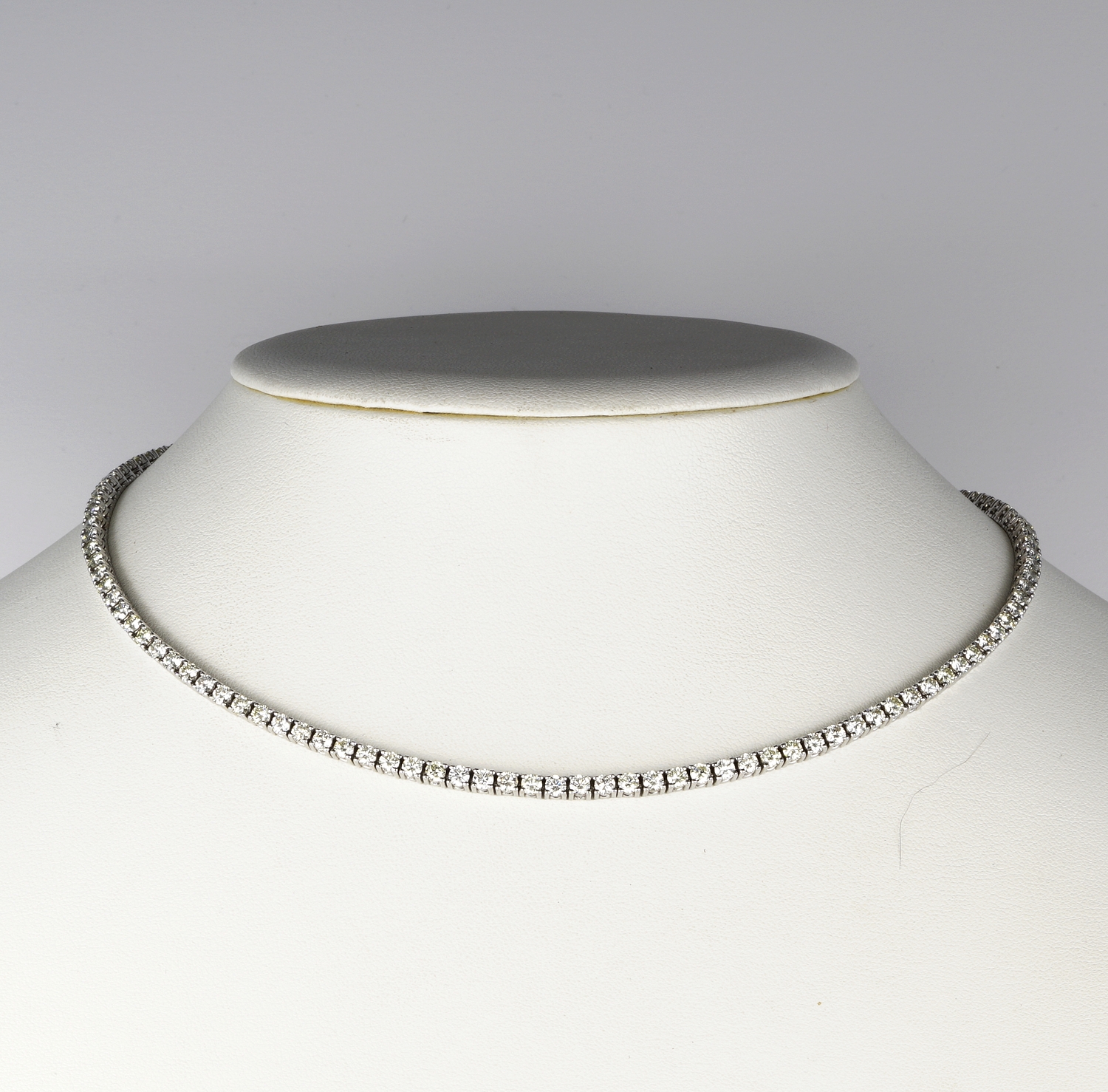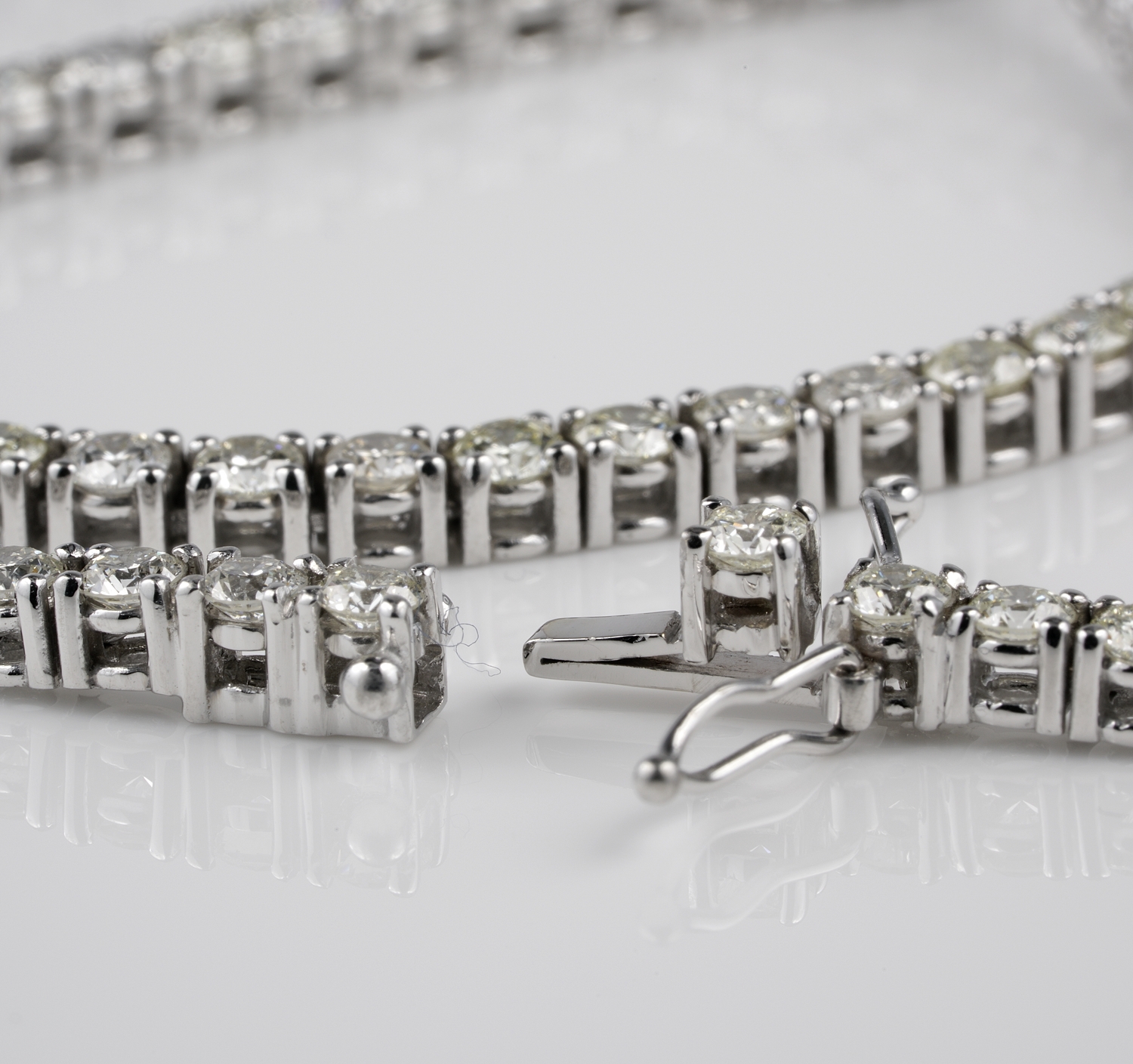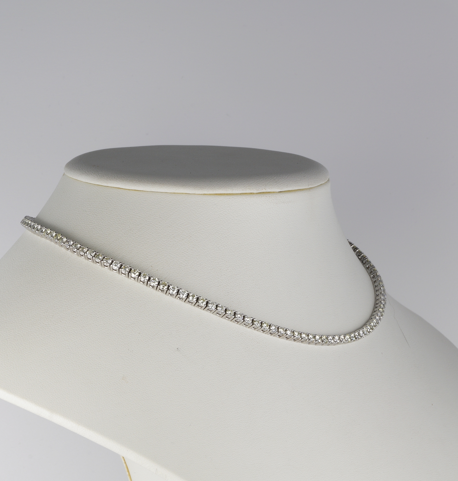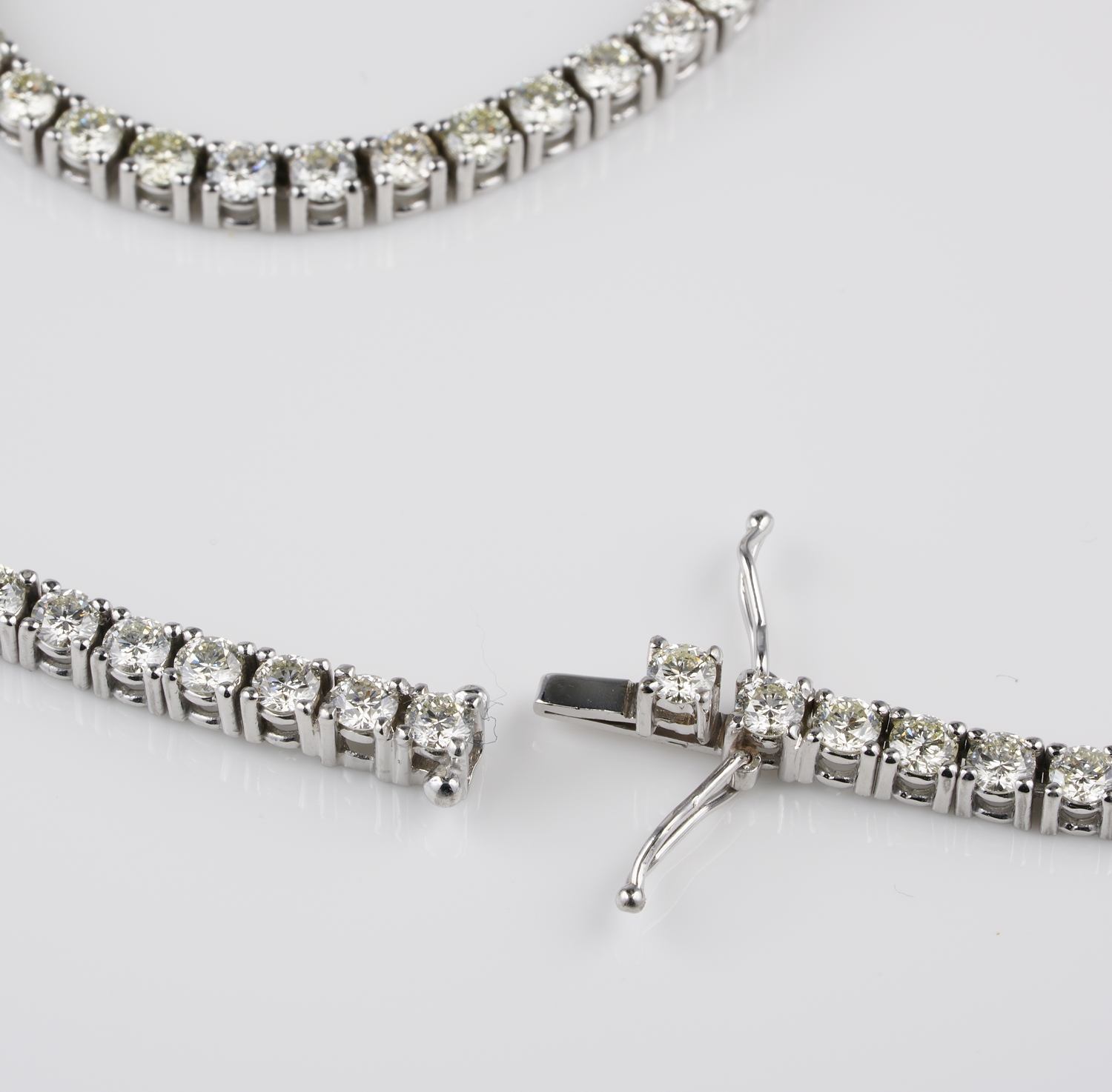 A continuous line of dazzling round brilliant cut Diamonds of the finest quality being 121 in number for a total of 11.00 Ct all of sheer quality being rated as G/H/I VVS/VS grade hard to find this good around, Diamonds are lively and powerful light coming out from each Diamond