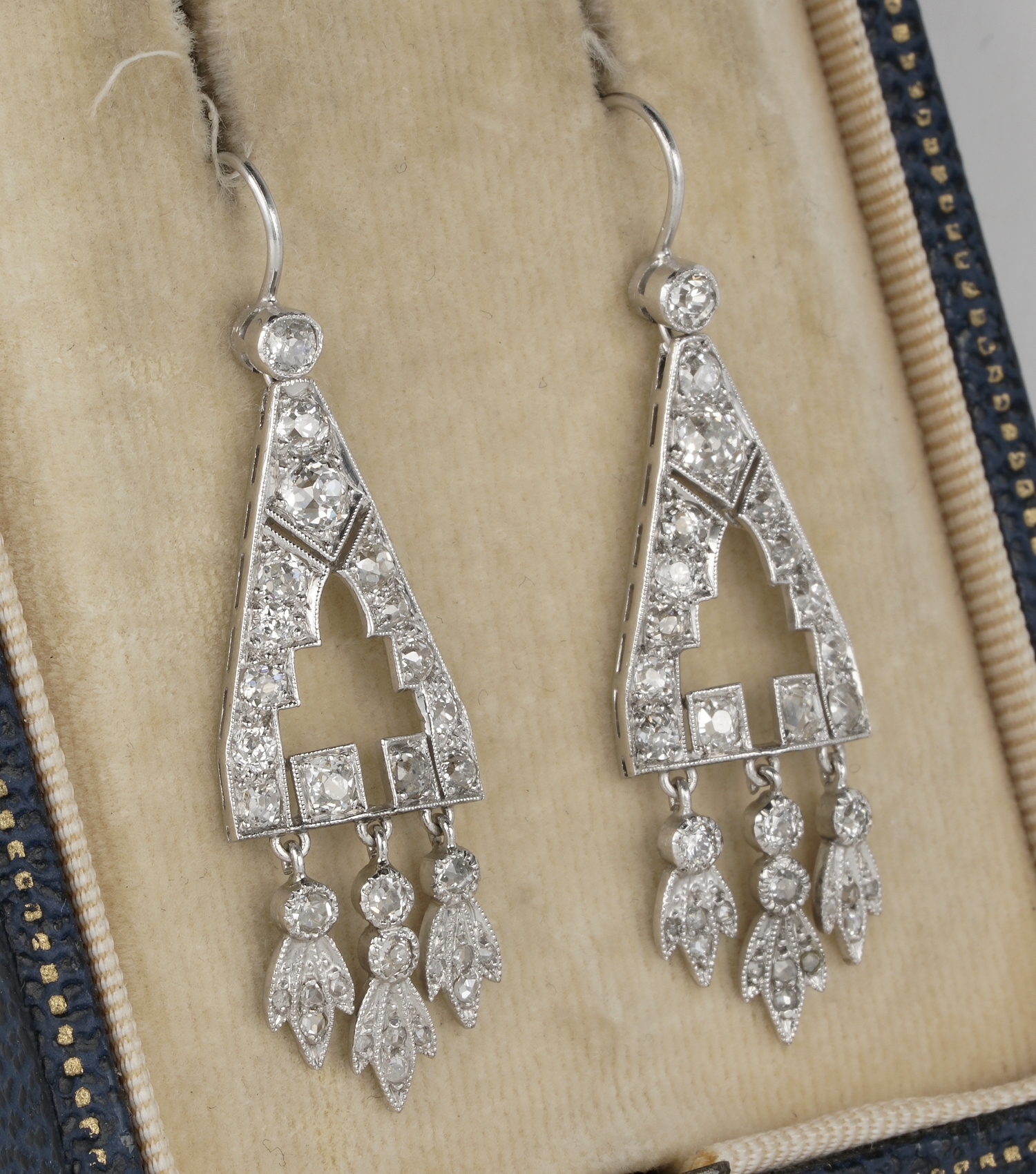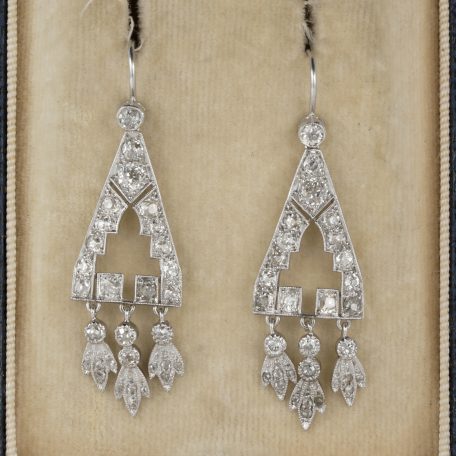 Extremely fine and rare purest Art Deco drop earrings our from the 20’s.