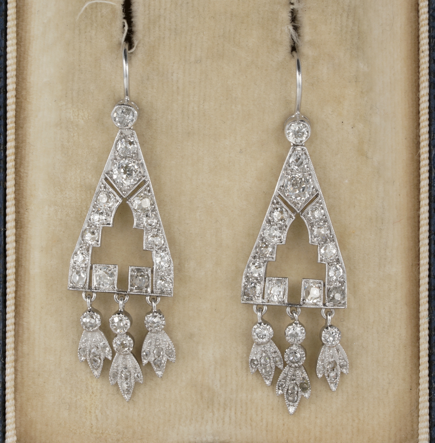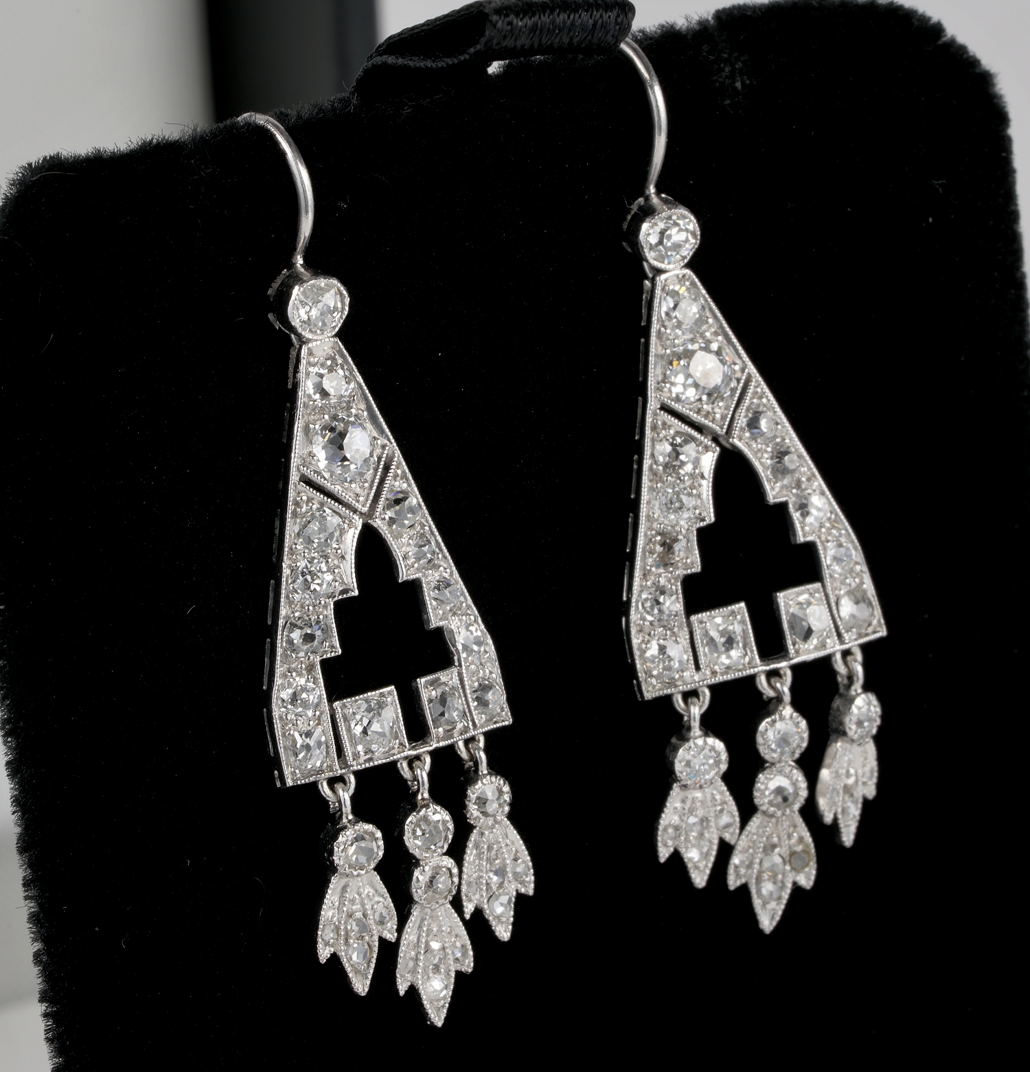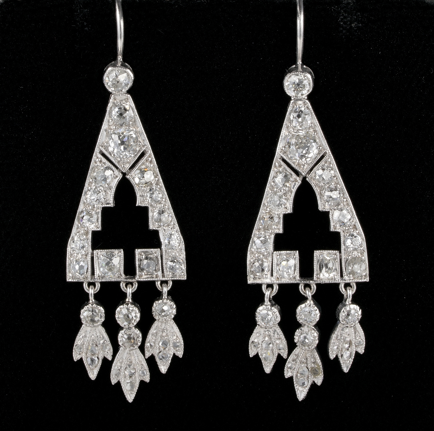 Spectacular Art Deco 2.0 Carat Diamond Rare Drop earrings