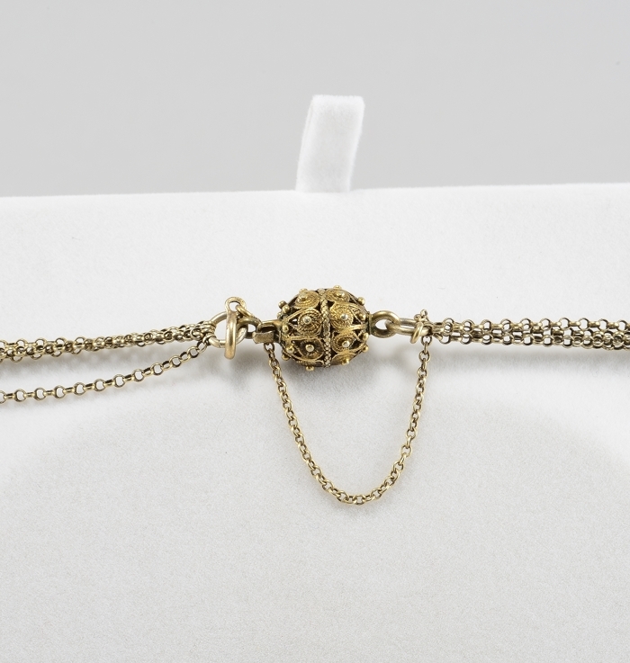 Even the back closure clasp is a work of Art a skilful made oval bead as well made filigree work with still its safety chain