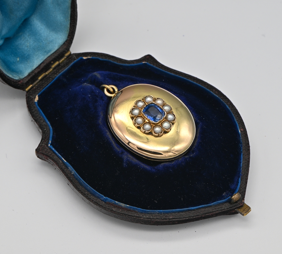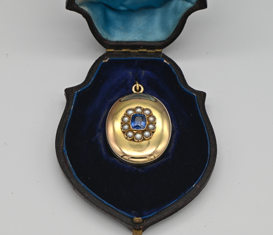 Locket is 42 x 31 mm. (h. x w.) centre flower is 18 x 16 mm. – internal glass window in perfect condition as the entire piece, comes with its original Victorian box making it more special and meaningful for a gift