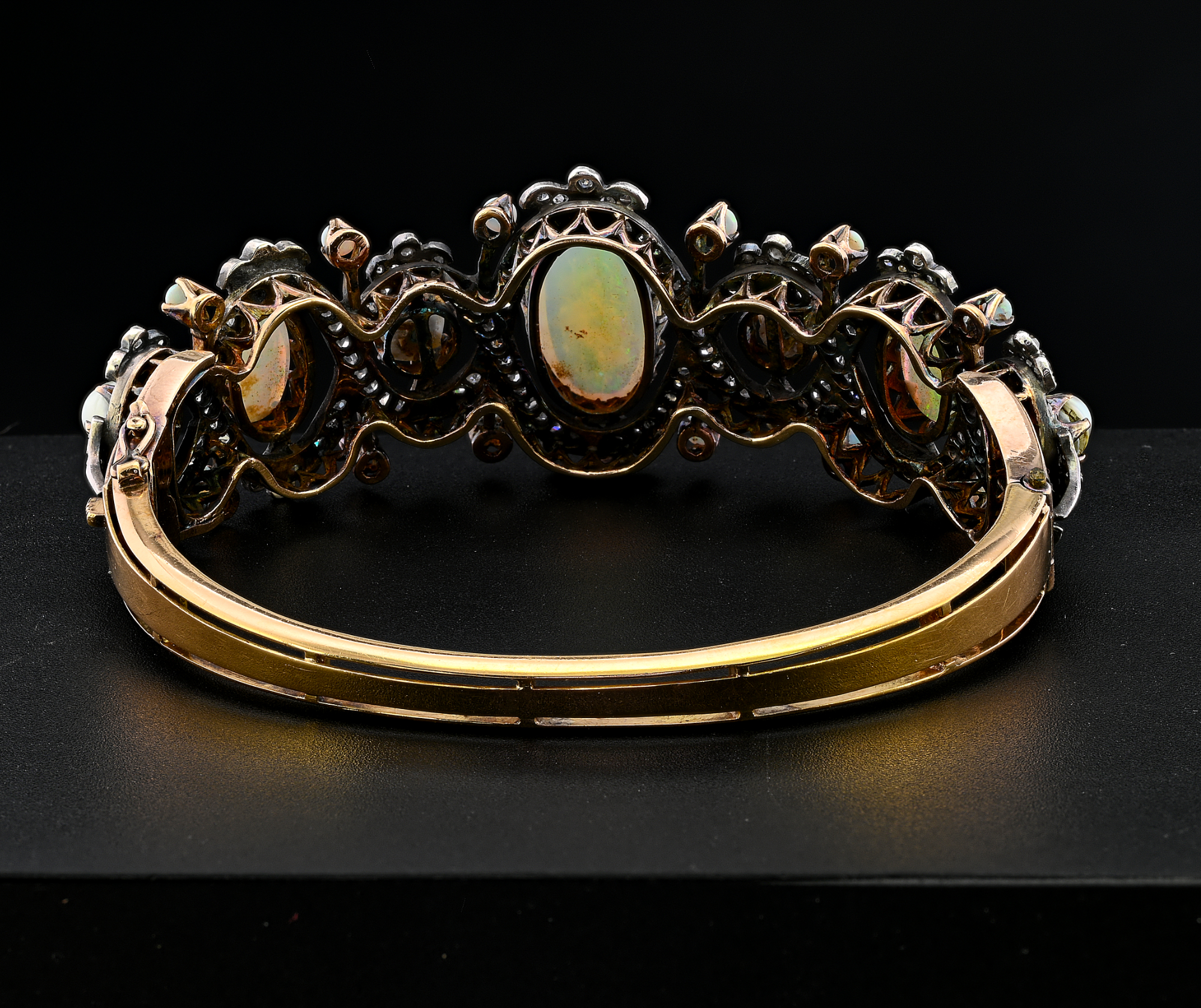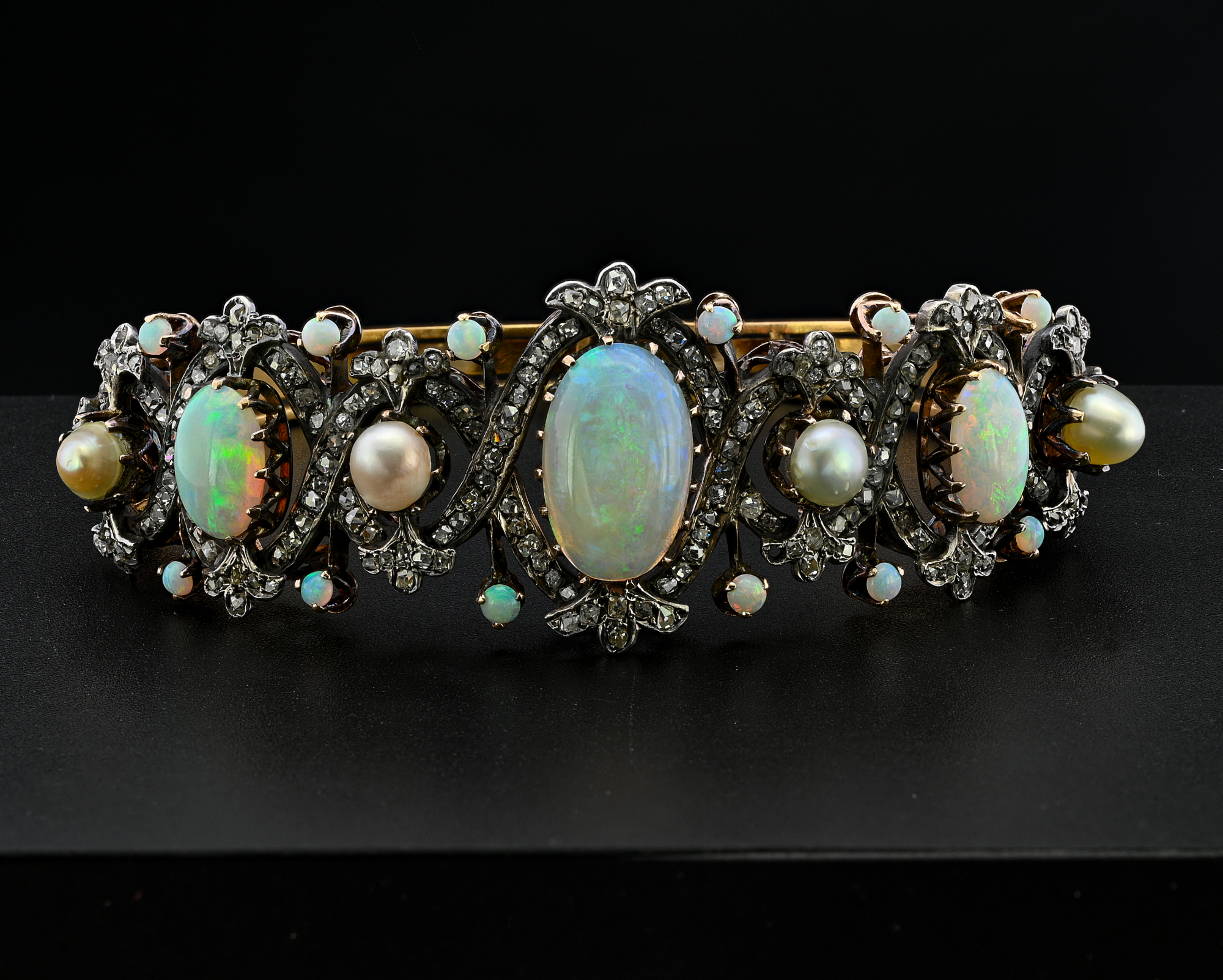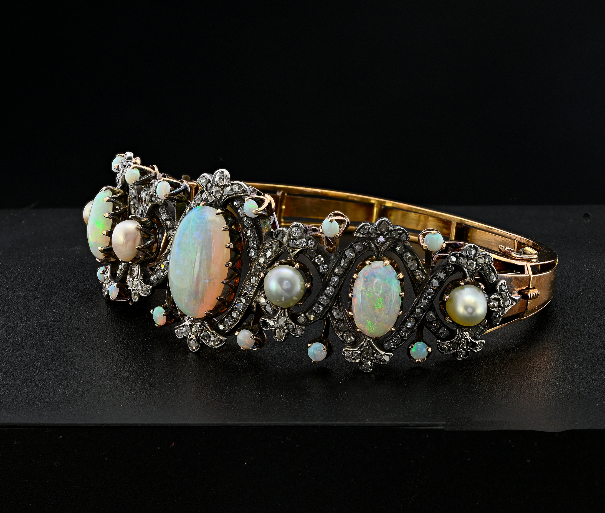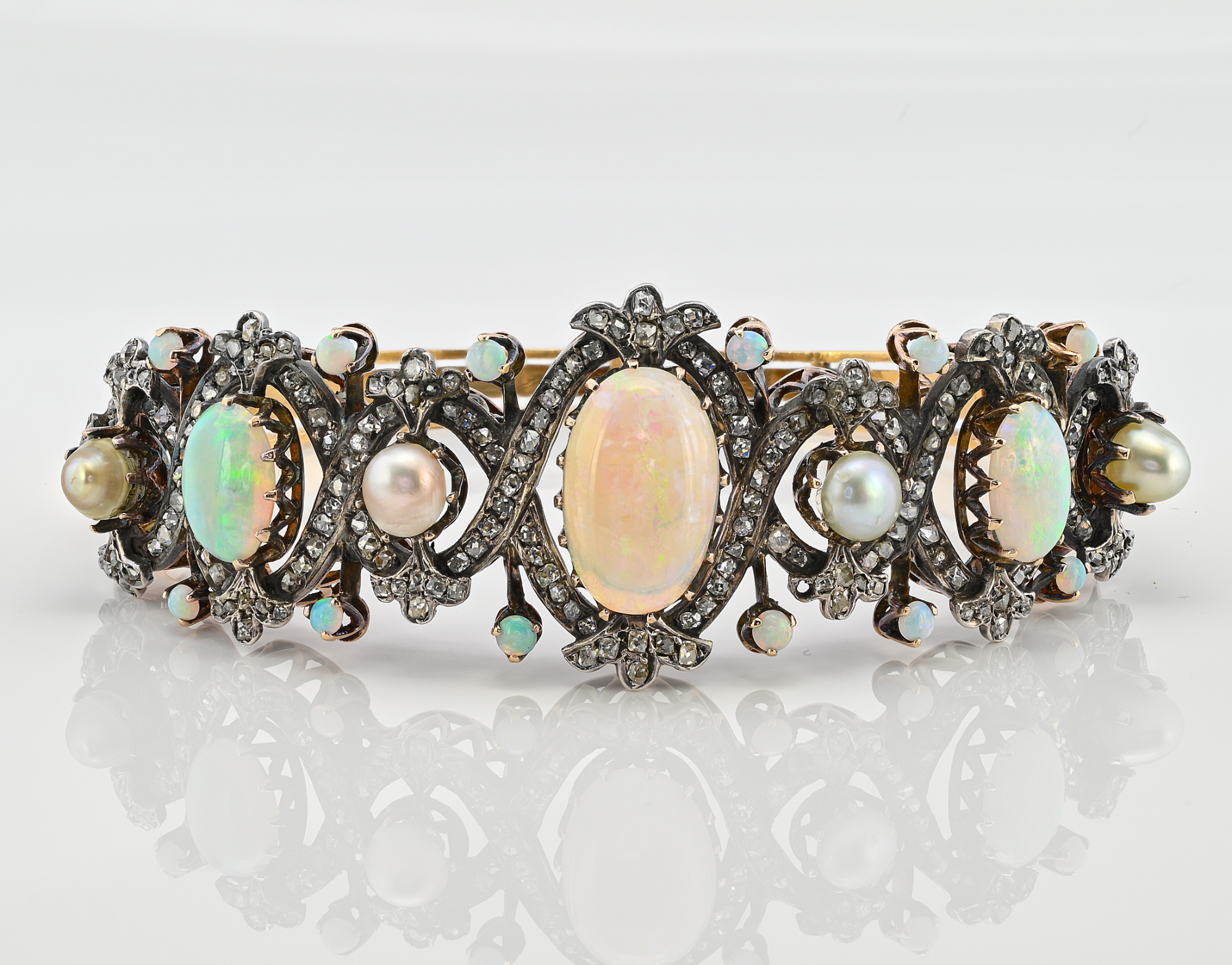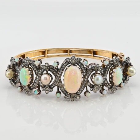 Victorian 5.58 Ct Opal Diamond Pearl 18 KT Bangle