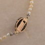 Completed with a lovely oval clasp 18 KT solid gold silver topped, centred by a cabochon cut natural unheated Sapphire of .75 Ct approx. set into two tiers of tiny rose cut Diamonds